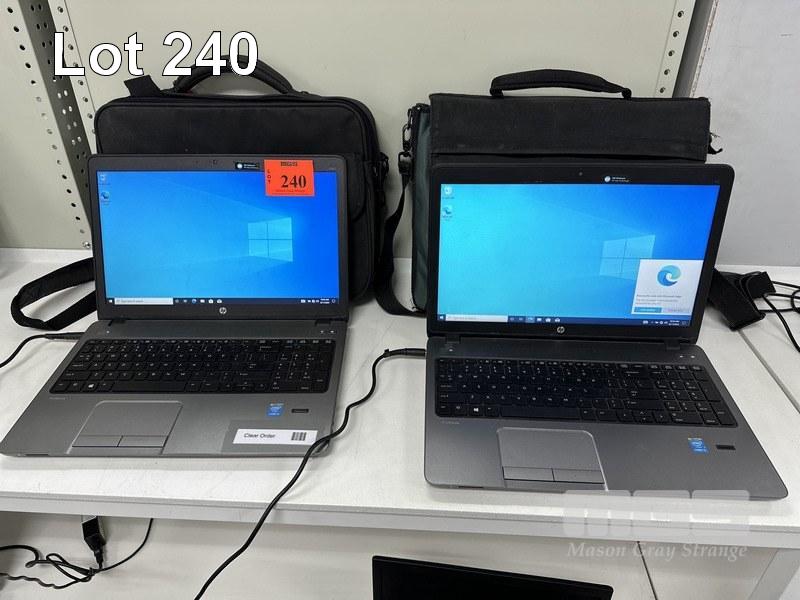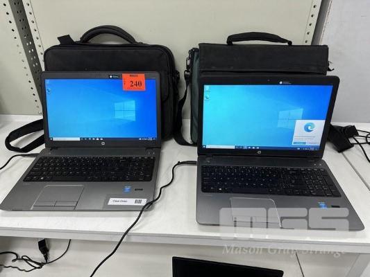 2 x LAPTOPS, HP PROBOOK 450 G1, CORE i5 4200M @ 2.5GHz, 4GB RAM, 500GB SATA HDD, WINDOWS 10 PRO INSTALLED, GENERIC POWER SUPPLY & BAG (NOTE: 1 x WITH 750GB HDD & MINOR DAMAGE)