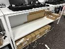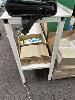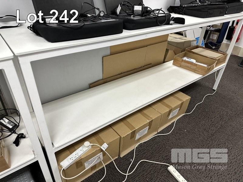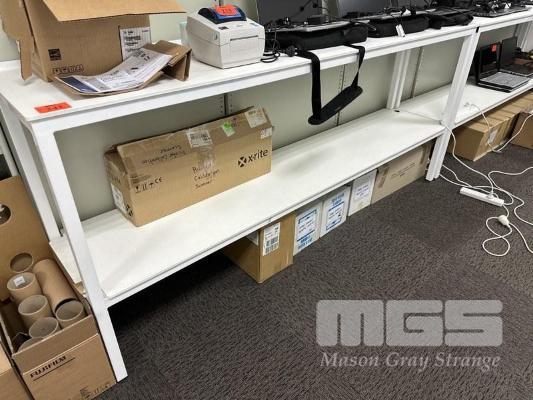 3 x BENCHES, WHITE, STEEL FRAME, EACH 235 x 50 x 102cm