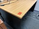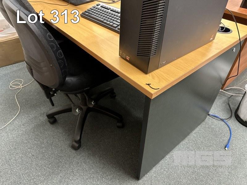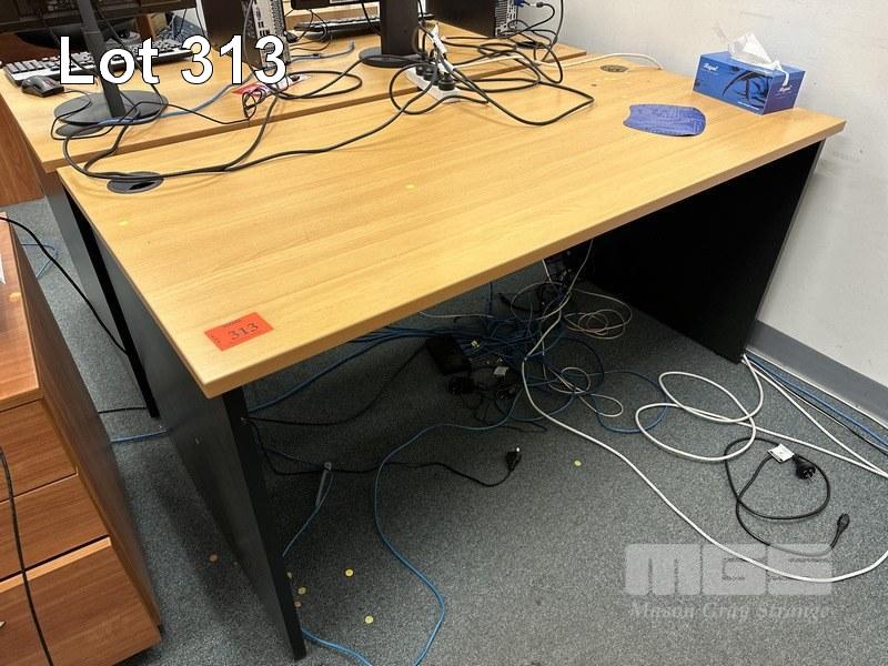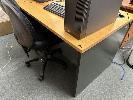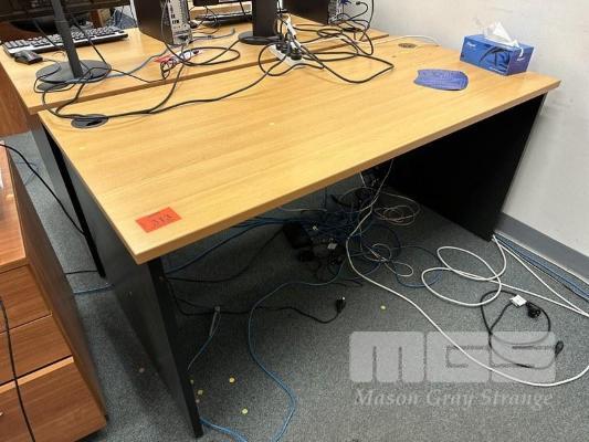3 x OFFICE DESKS, BEECH / IRONSTONE, 150 x 75cm WITH CHAIRS