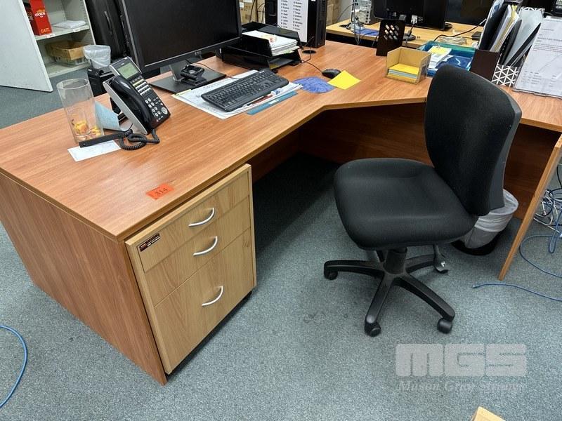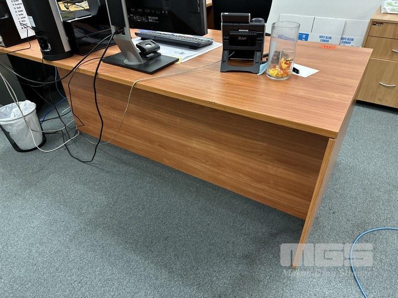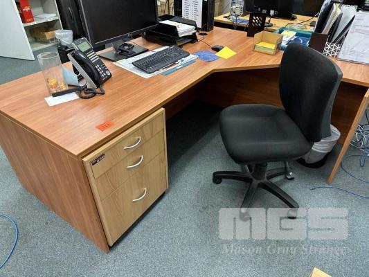 CORNER OFFICE DESK, RED CHERRY LAMINATE, 200 x 190 x 85cm WITH 3-DRAWER MOBILE & CHAIR