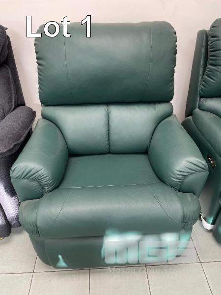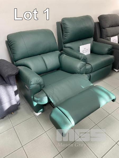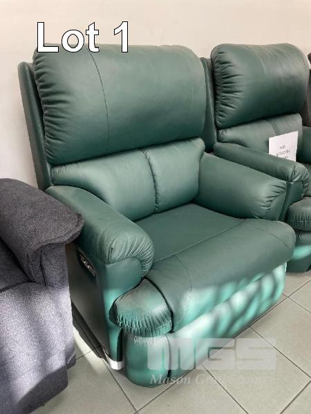 OSCAR FURNITURE 'ABBY' SINGLE SEAT ELECTRIC RECLINER, GREEN LEATHER, 240V 10AMP PLUG