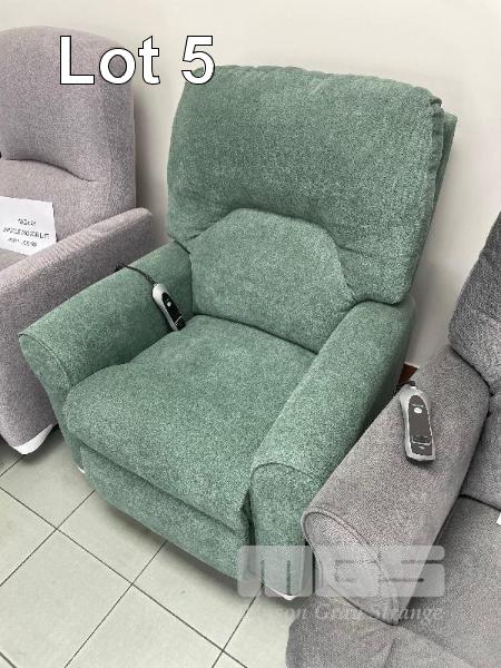 OSCAR FURNITURE 'PADDINGTON' SINGLE SEAT ELECTRIC RECLINER, RECLINE & LIFT, GREEN CLOTH, 240V 10AMP PLUG