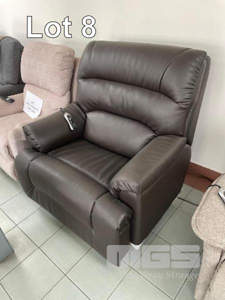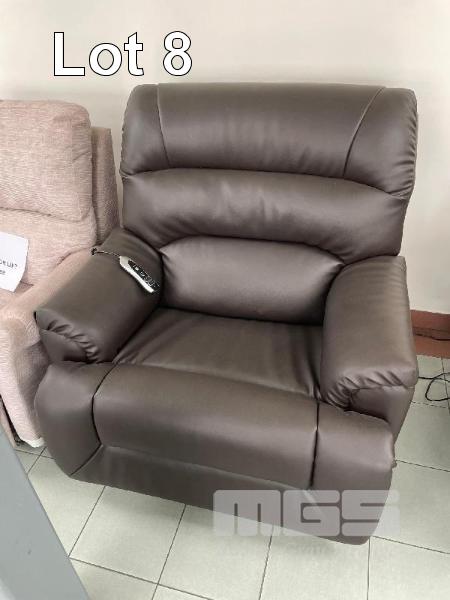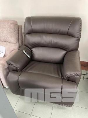 OSCAR FURNITURE 'ZUES' KING SIZE SINGLE SEAT ELECTRIC RECLINER, DUAL LIFT FUNCTION, BROWN LEATHER 240V 10AMP PLUG