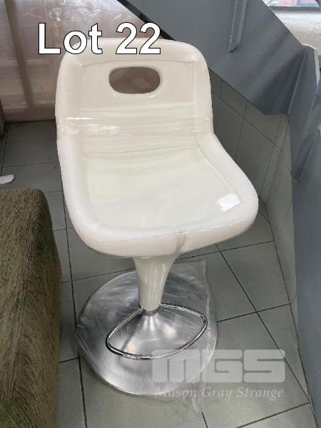 OSCAR FURNITURE SWIVEL BAR STOOL, WHITE PLASTIC SEAT, CHROME BASE