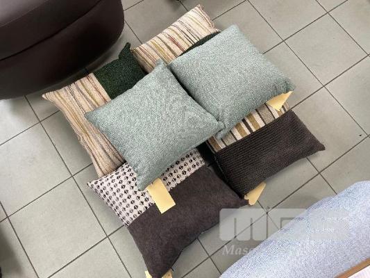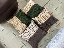 SET OF 6 THROW CUSHIONS LIGHT GREEN, GREEN & PATTERN, BROWN & PATTERN CLOTH