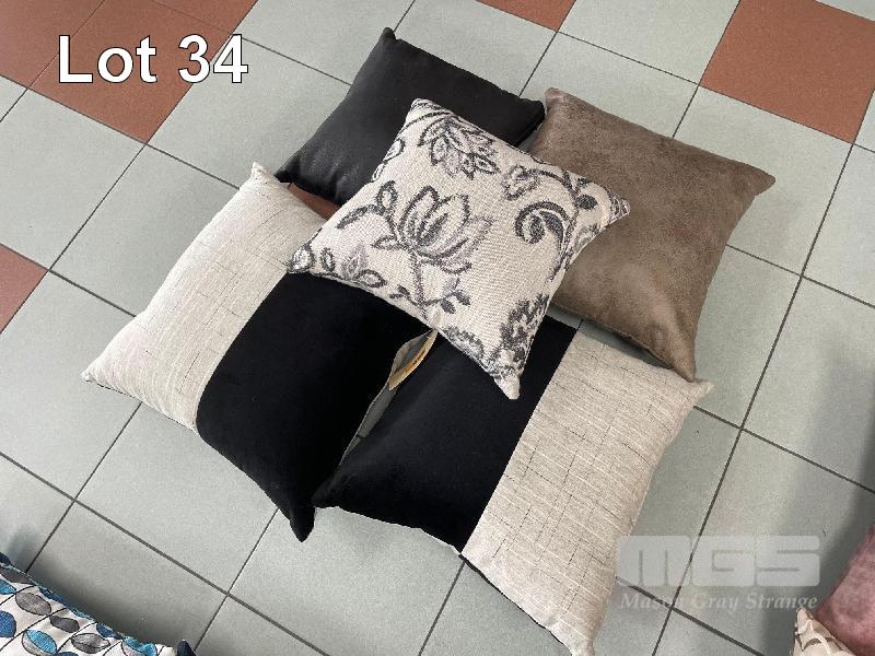 SET OF 5 THROW CUSHIONS BLACK, LIGHT BROWN, GREY, CLOTH & LEATHER SUEDE