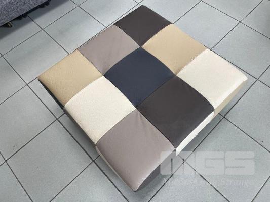 OSCAR FURNITURE OTTOMAN, CREAM, WHITE, BROWN & BLUE LEATHER, 600 x 600mm