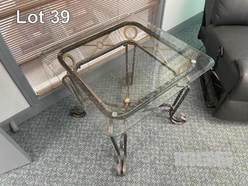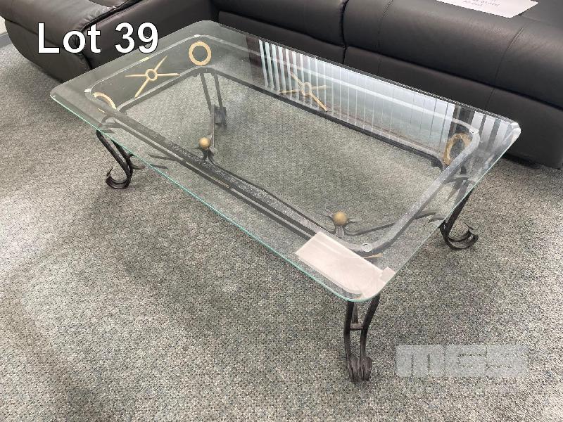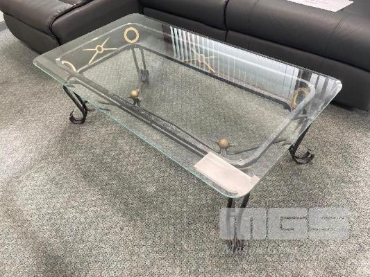 2 x MATCHING GLASS & WROUGHT IRON COFFEE TABLES,