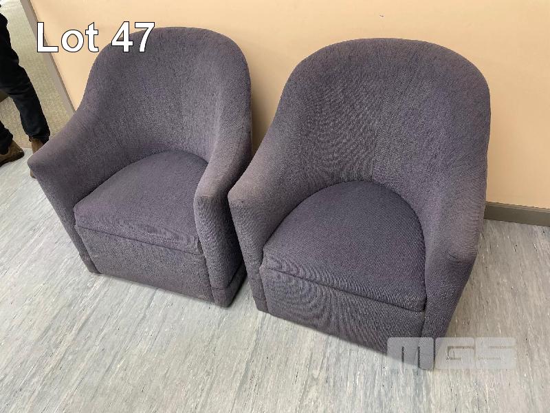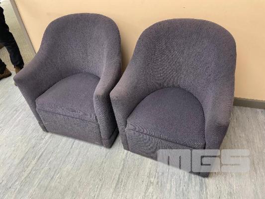 PAIR OF GREY CLOTH VISITORS TUB CHAIRS