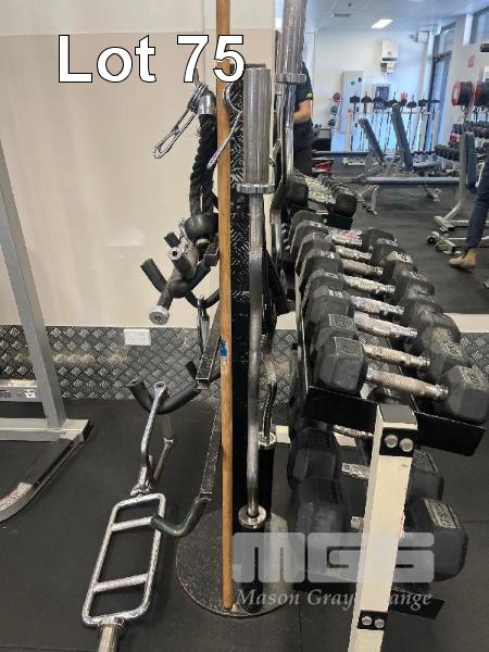 GYM STORAGE TREE WITH CABLE MACHINE ACCESSORIES, TRICEP BAR, CURL BAR ETC.