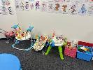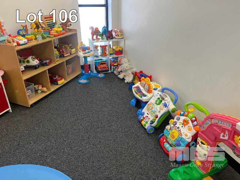 LARGE QUANTITY TODDLERS TOYS, 2 x PLASTIC CHILDREN'S TABLES 850mm WITH 10 x STOOLS
