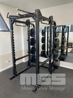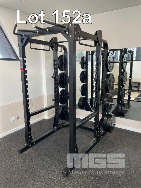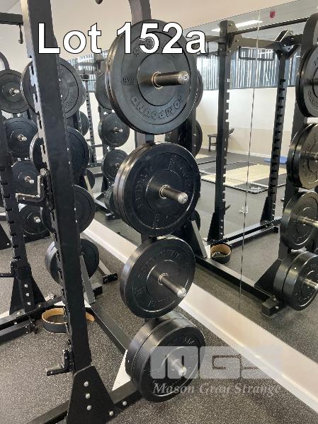 COMPOUND FITNESS SQUAT CAGE WITH SQUAT BOX & BUMPER PLATES 4 x 5kg, 4 x 10kg, 2 x 15kg, 4 x 20kg (LOCATED UPSTAIRS)
