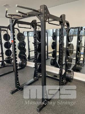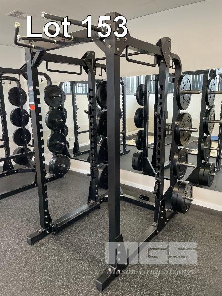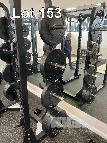 COMPOUND FITNESS SQUAT CAGE WITH SQUAT BOX & BUMPER PLATES 4 x 5kg, 4 x 10kg, 2 x 15kg, 4 x 20kg (LOCATED UPSTAIRS)