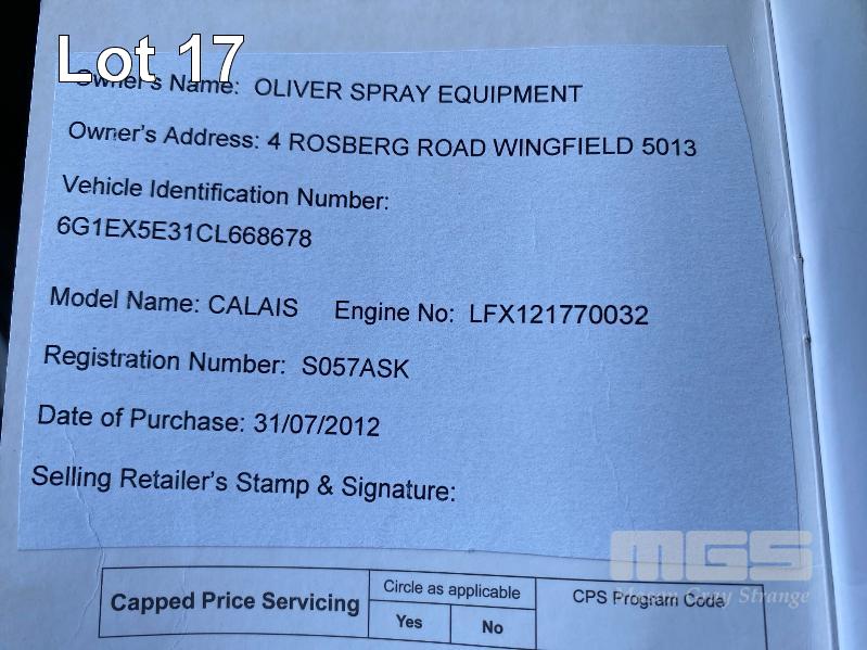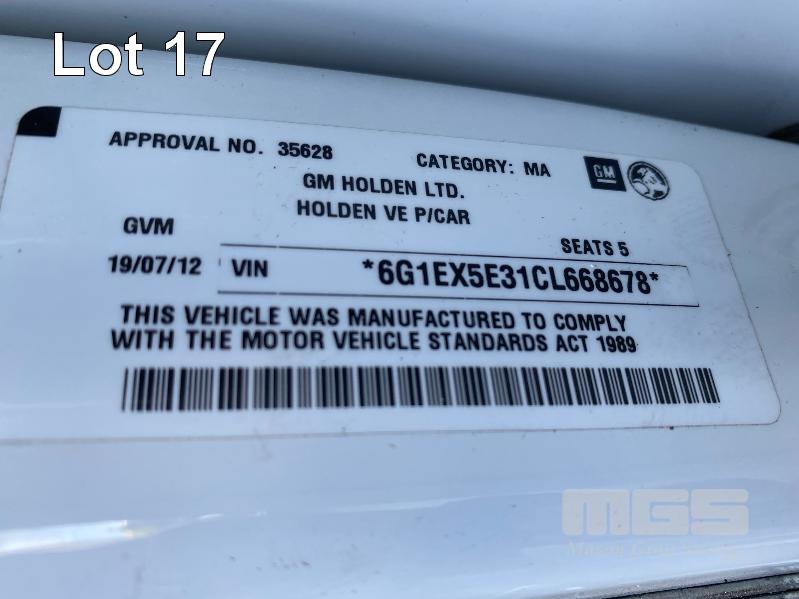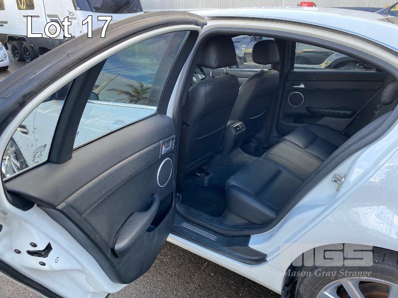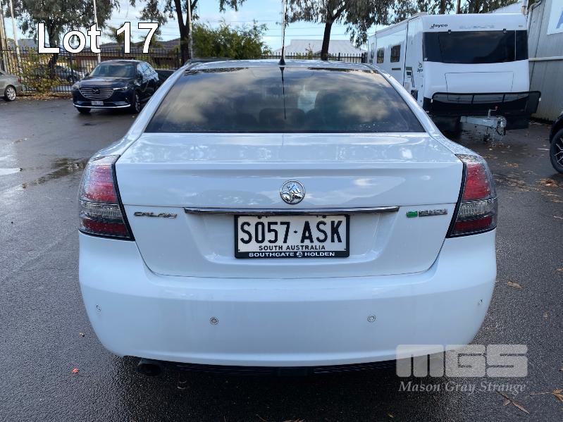 2012 HOLDEN VE CALAIS SERIES II SEDAN REG: S057 ASK (SA) VIN: 6G1EXSE31CL668678 ENG: LFX121770032 ODO: 193,983kms SHOWING 3.6 LITRE, V6 EFI, AUTOMATIC TRANSMISSION, WHITE DUCO, 4 DOORS, 5 SEAT, ABS, AIR BAG, AIR CON, ALLOY WHEELS, BLUETOOTH, CD PLAYER, CENTRAL LOCKING, CRUISE CONTROL, IMMOBILISER, LEATHER TRIM, POWER STEERING, POWER WINDOWS, SPARE WHEEL, TRACTION CONTROL KEY #52 (WITH PAPERS, WITH 1 KEY/S, WITH OWNER'S MANUAL, WITH SERVICE BOOKS) CONDITION: LHS REAR - MINOR DOOR SCRATCHES & SCRAPES