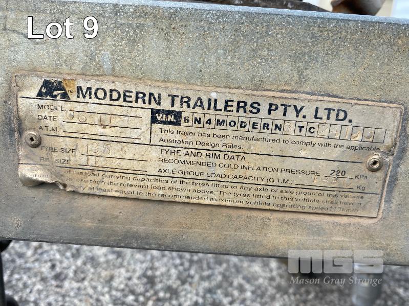 2011 TANDEM AXLE CAGED TRAILER, MODERN TRAILERS 8x5ft (2500x1600mm) REG: S699TEL (SA) VIN / CHASSIS: 6N4MODERN9TC24193 GALV STEEL BALL HITCH, BRAKES JOCKEY WHEEL GTM: 1,990kg