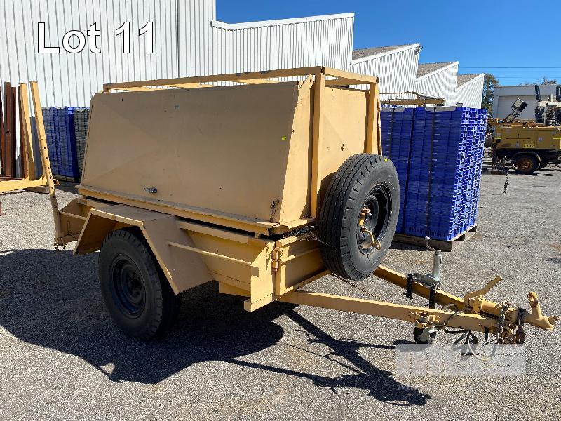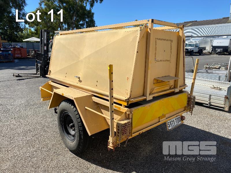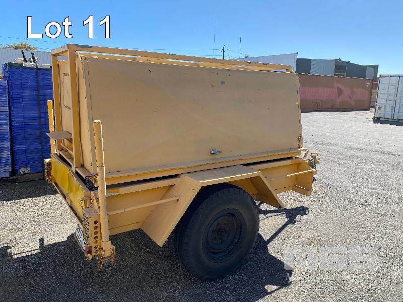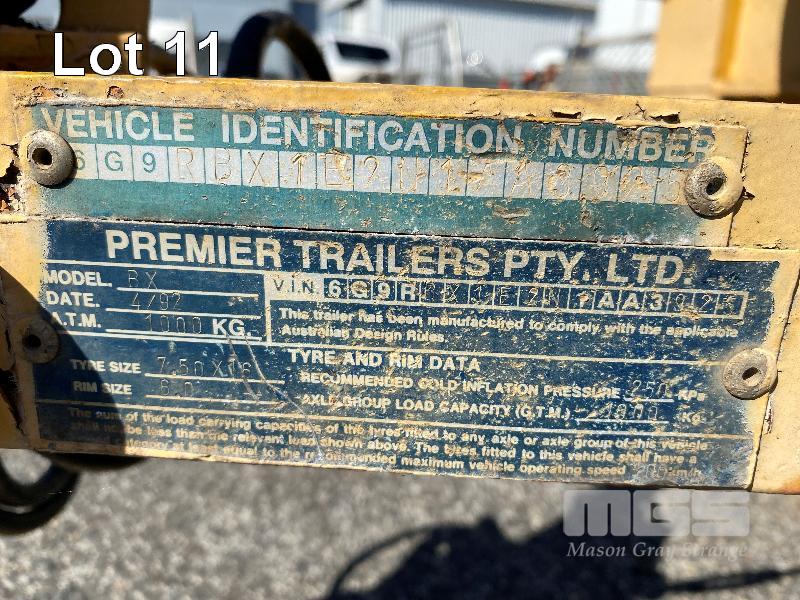1992 PREMIER 6.8X4' SINGLE AXLE OFFROAD ENCLOSED TRAILER REG: S971 TDO (SA) VIN / CHASSIS: 6G9RBX1E2N1AA3925 MOD: BX YELLOW, BALL HITCH, BRAKES, JOCKEY WHEEL, SPARE WHEEL REAR HINGED TAIL GATE 2 x SIDE LIFT DOORS WITH INTERNAL SHELVING, ROOF RACK & 2 x RETRACTABLE REAR SUPPORT LEGS SIZE: 2100 x 1230 x 1170mm(H) TYRE SIZE: 7.50-16 GVM: 1,000kg (WITH PAPERS)