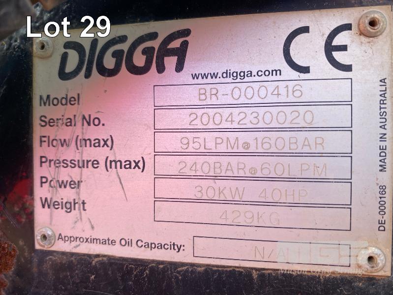 SWEEPER ATTACHMENT SUIT SKID STEER LOADER, DIGGA, MOD: BR-000416 WIDTH: 1,800mm HYDRAULIC DRIVEN, MAX FLOW: 95 L/MIN @ 150 BAR WEIGHT: 429kg