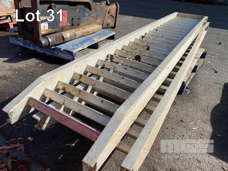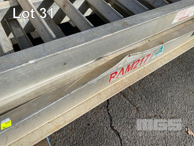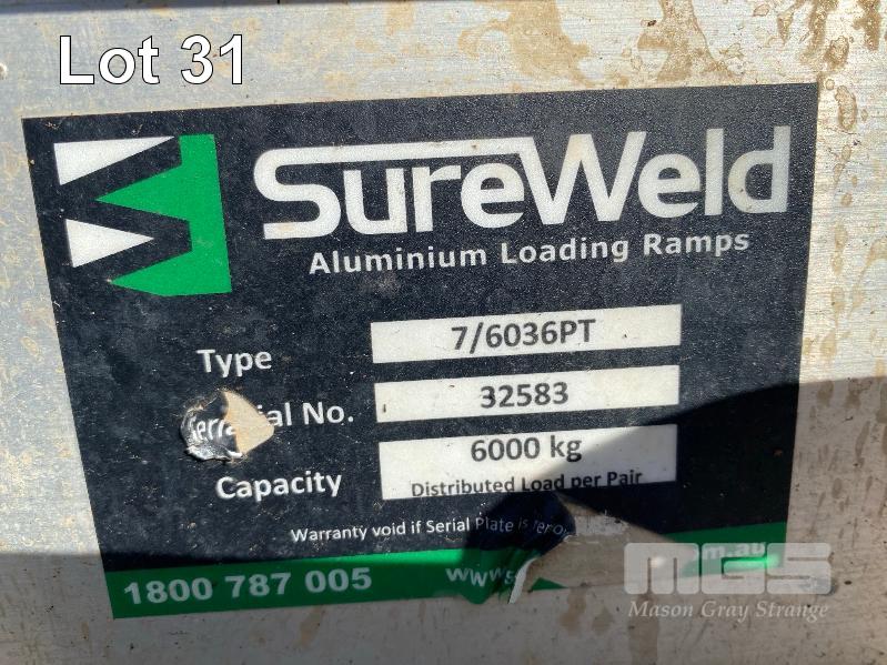 PAIR ALLOY LOADING RAMPS, SURE WELD, SLIMAX, TYPE: 7/6036PT LOAD CAP: 6,000kg LENGTH: 3600mm x WIDTH: 600mm (BEND IN 1 x RAMP RAIL)