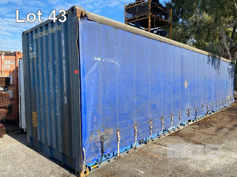 40 FT SHIPPING CONTAINER HIGH CUBE, CURTAIN SIDER WITH GATES 9.8 ft HIGH x 8.2 ft WIDE CONTAINER NUMBER : RWTU 903057