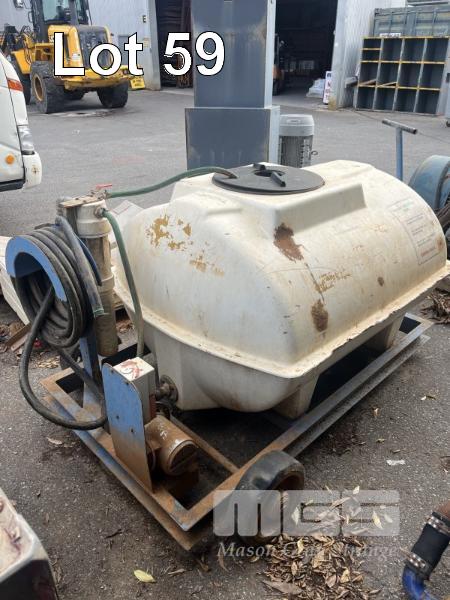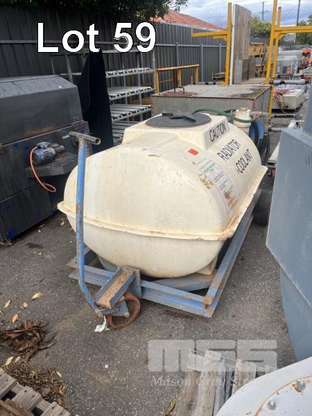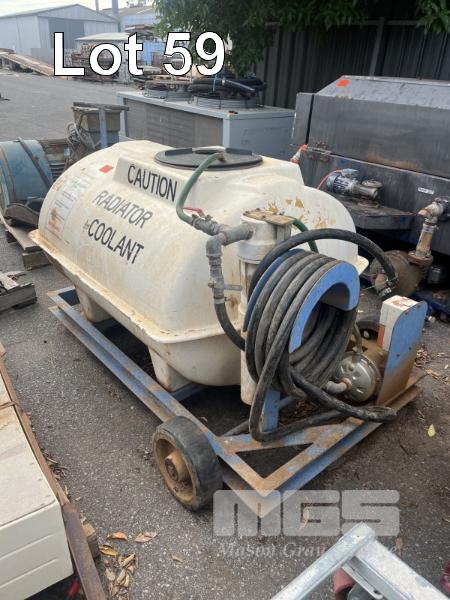 RADIATOR COOLANT TRANSPORT & PUMP TANK FIBREGLASS TANK ON TROLLEY BASE 800 LITRE APPROX 240V PUMP, HOSE & FILTER