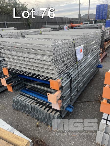 QTY OF COLBY HEAVY DUTY LONGSPAN RACKING 6 @ 2400 (H) x 1070mm (D) FRAMES - GALVANISED 30 @ 2590 x 65mm HDG STEP BEAMS 30 @ 1250 x 1070mm (D) FLUSH MESH DECKS 1 x PACK