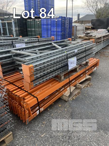 QTY OF COLBY HEAVY DUTY LONGSPAN RACKING 6 @ 2400 (H) x 840mm (D) FRAMES - GALVANISED 32 @ 2740 x 75mm ORANGE BEAMS 32 @ 1250 x 840mm (D) MESH DECKS - 2 SUPPORTS 2 x PACKS