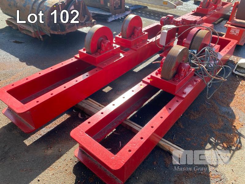 PIPE ROLLER UNIT, SUIT WELDING COMPRISING 1 x ROLLER DRIVE UNIT, 415V REMOTE PENDANT CONTROLLER, VARIABLE SPEED, 400m DIAMETER DRIVE WHEELS POLYURETHANE COATED, ADJUSTABLE WIDTH UP TO 1800mm & IDLER SUPPORT ROLLER ASSEMBLY, 400mm DIAMETER WHEELS, ADJUSTABLE WIDTH UP TO 2000mm APPROX
