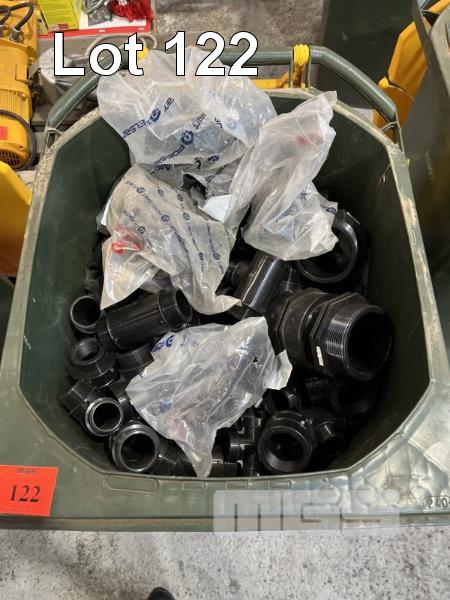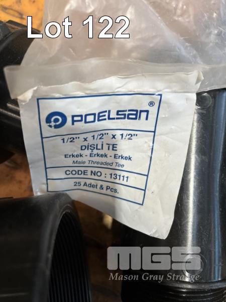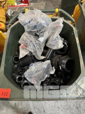 ASSORTED POLY PIPE FITTINGS, SUIT IRRIGATION, POELSAN ASSORTED SIZES INCLUDING ADAPTORS & JOINERS 1 x WHEELIE BIN FULL, INCLUDING BIN