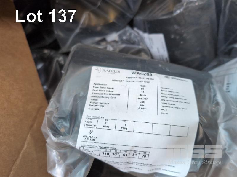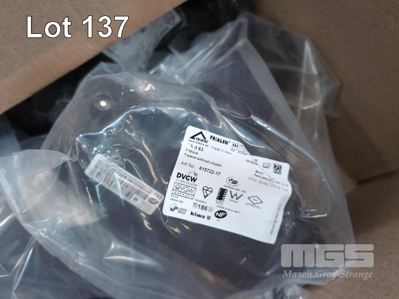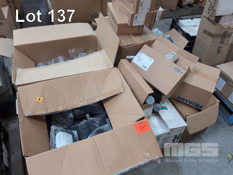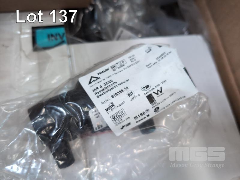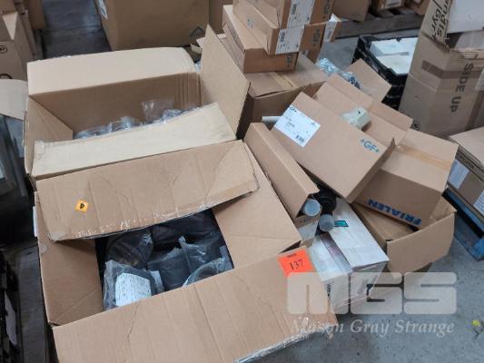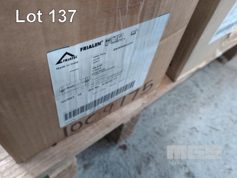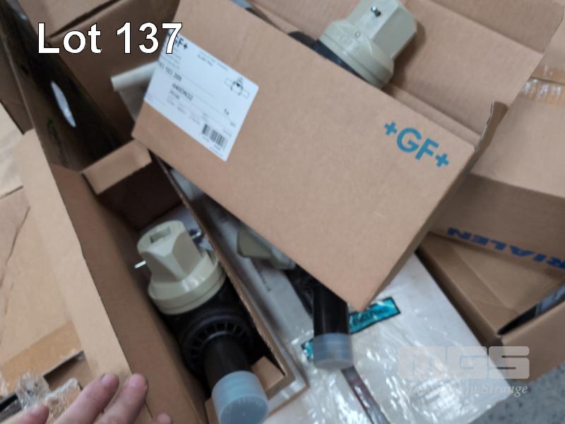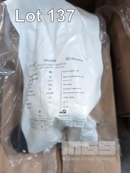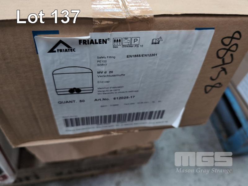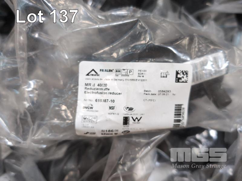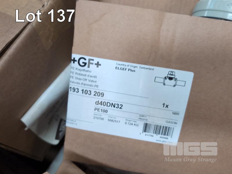 BULK QUANTITY ASSORTED HDPE GAS FITTINGS, INCLUDES +GF+ VALVES, RADIUS PRESSURE TAPPING TEES, FRIATEC ELECTROFUSION PRESSURE CAPS, COUPLERS, T-PIECES & REDUCERS ETC (1 X PALLET)