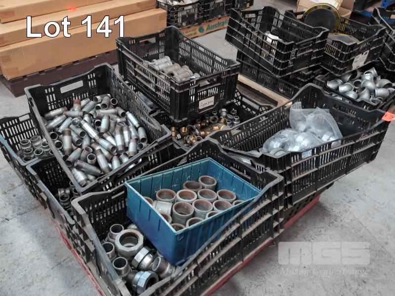 BULK QUANTITY ASSORTED THREADED GALVANISED IRON PIPE FITTINGS. INCLUDES REDUCERS, JOINER, ELBOWS, COUPLINGS ETC (1 X PALLET)