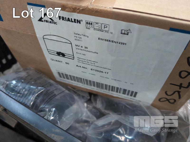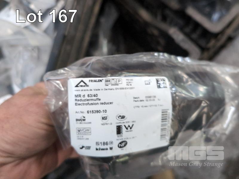 BULK QUANTITY OF ASSORTED FRIATEC ELECTROFUSION HDPE GAS FITTINGS. INCLUES REDUCERS & CAPS ETC (1 X PALLET)