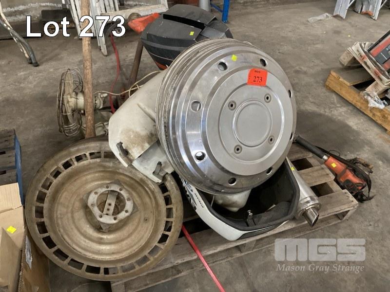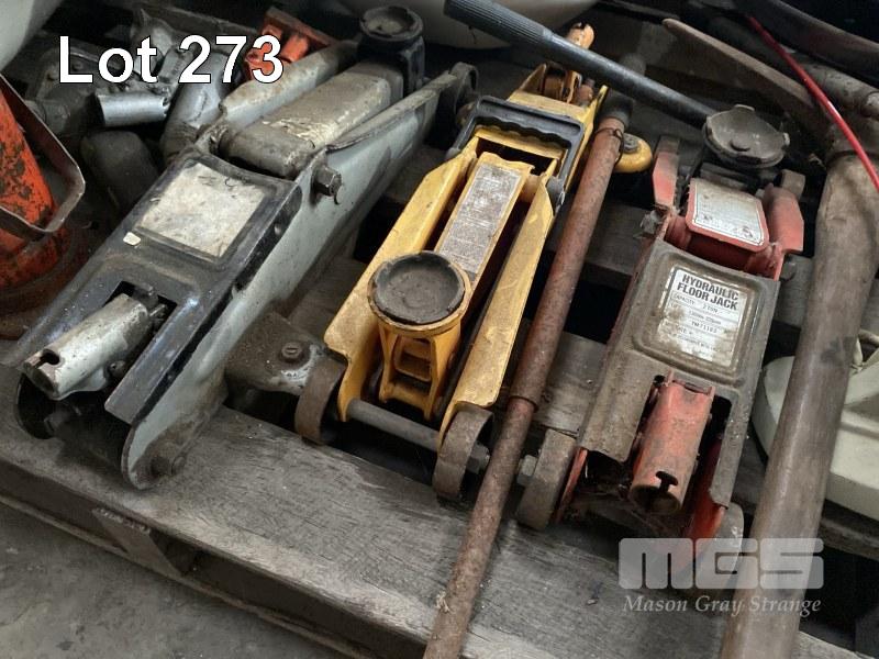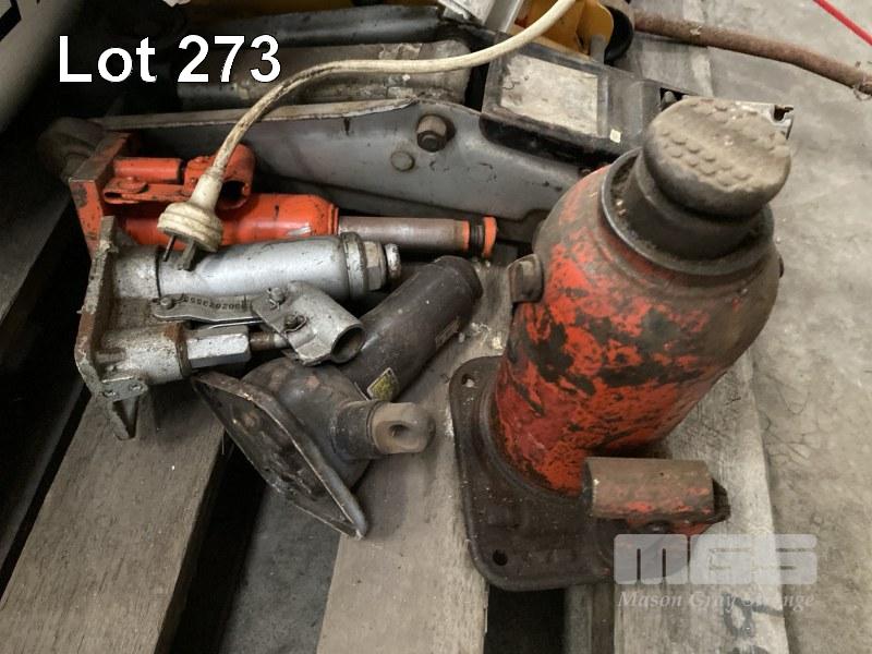 OUTBOARD ENGINE COVERS, LINE TRIMMER, 3 x TROLLEY JACKS, BOTTLE JACKS, MUFFLER, ETC 1 x PALLET