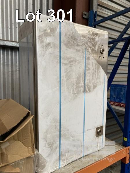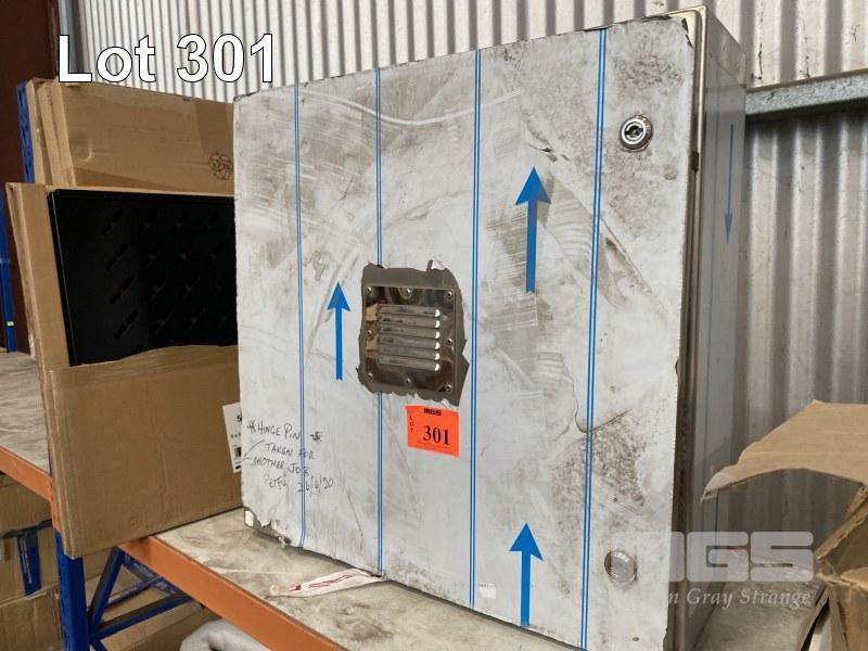 3 x ELECTRICAL CONTROL CABINETS, STAINLESS STEEL RITTAL 600 x 600 x 230mm, 380 x 600 x 230mm WITH CABLES, SWITCHES, ETHERNET DEVICES & SWITCHES 3 x SHELVES
