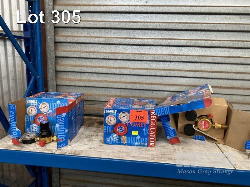 2 x GAS REGULATORS, CIGWELD COMET, 2 x ACETYLENE & 1 x ARGON