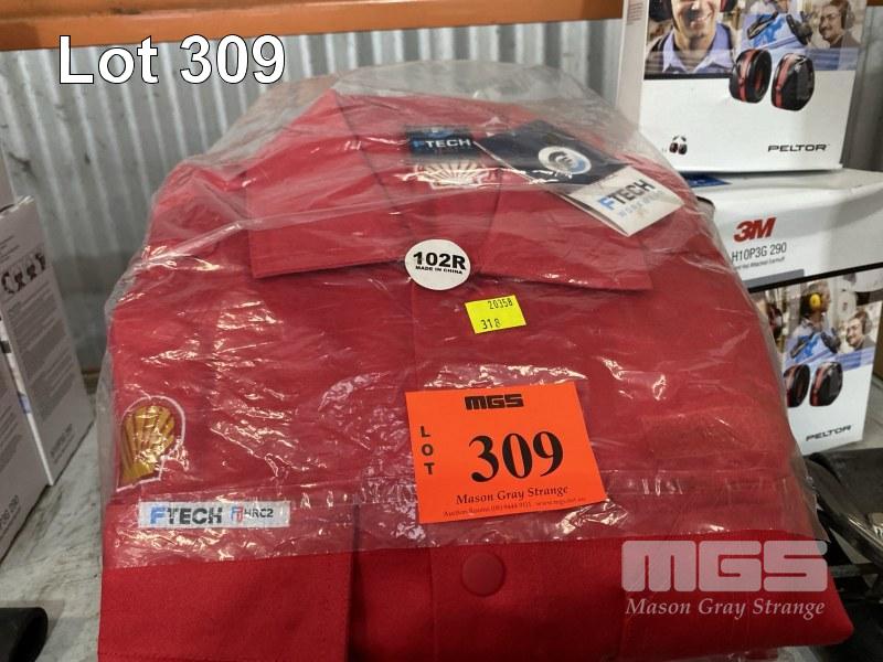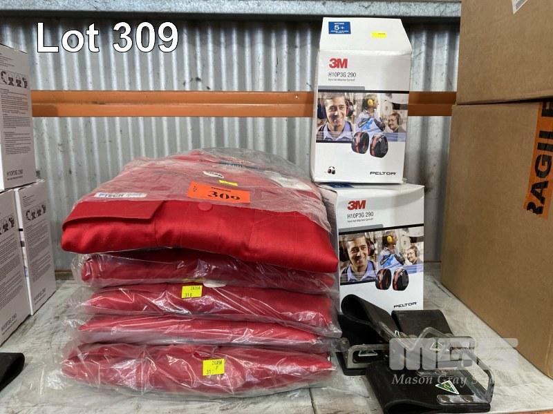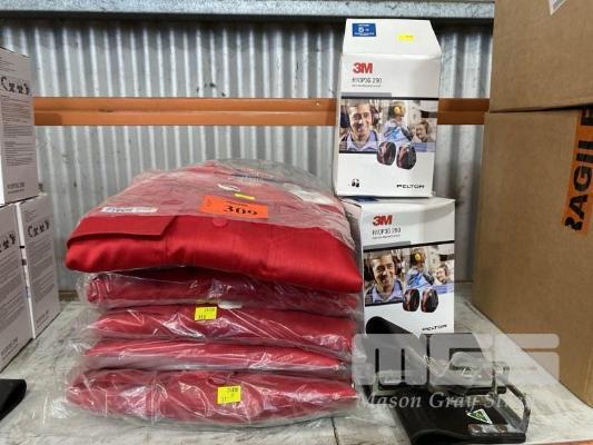 6 x PAIRS OVERALLS, F TECH WORKWEAR, RED WITH REFLECTIVE BANDS, SHELL LOG SIZE: 102R & 3 x PAIRS HARD HAT EAR MUFFS, 3M, PELTOR AS NEW