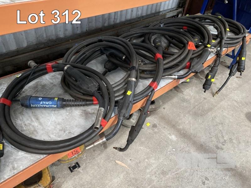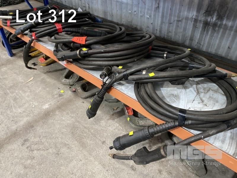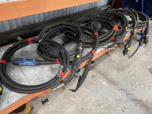 9 x MIG WELDING LEADS, SOME WITH HAND PIECES, ESAB, PSF405 (1 X SHELF)