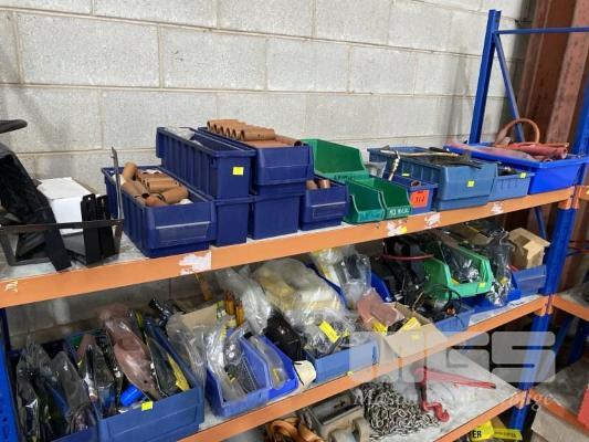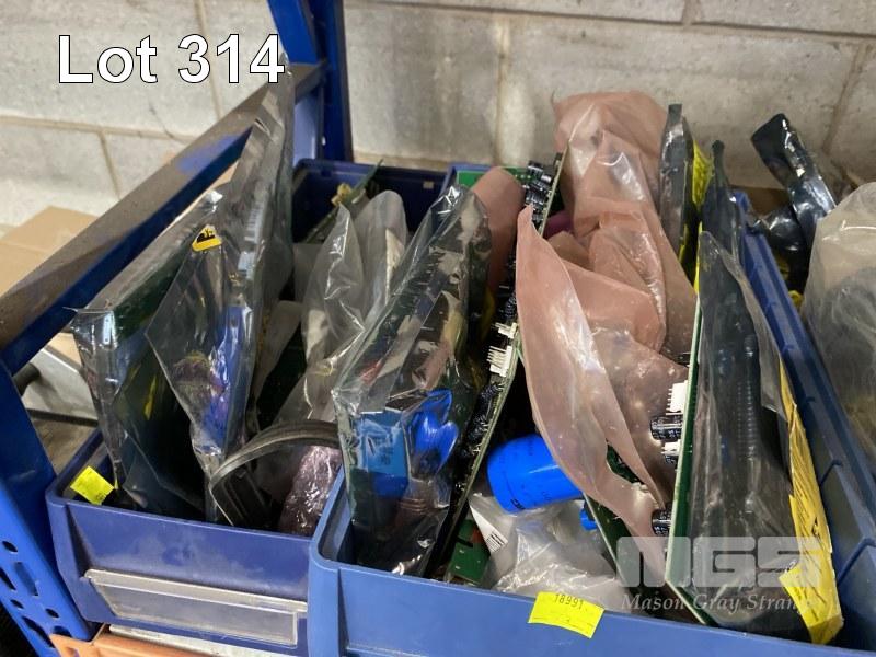 MIG & ARC WELDING PARTS & COMPONENTS, INCLUDING LUGS, CIRCUIT BOARDS, CABLES, CAPACITORS, ETC IN PARTS DRAWERS 2 x SHELVES