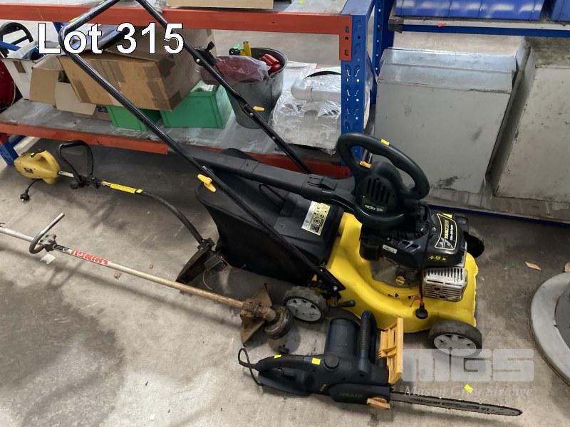 LAWNMOWER, YARD KING 138cc PETROL, LINE TRIMMERS, TALON 240V & SHINGU, PETROL WITH BLOWER & CHAINSAW, OZITO & GMC, 240V & 2 x LPG PATIO HEATERS