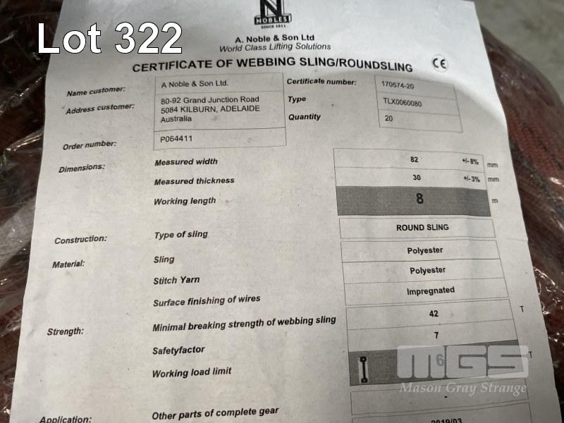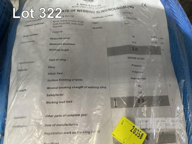 LIFTING SLINGS, NOBLES & SONS 2 x 8 TONNE x 3m, BLUE & 1 x 6 TONNE x 8m, BROWN