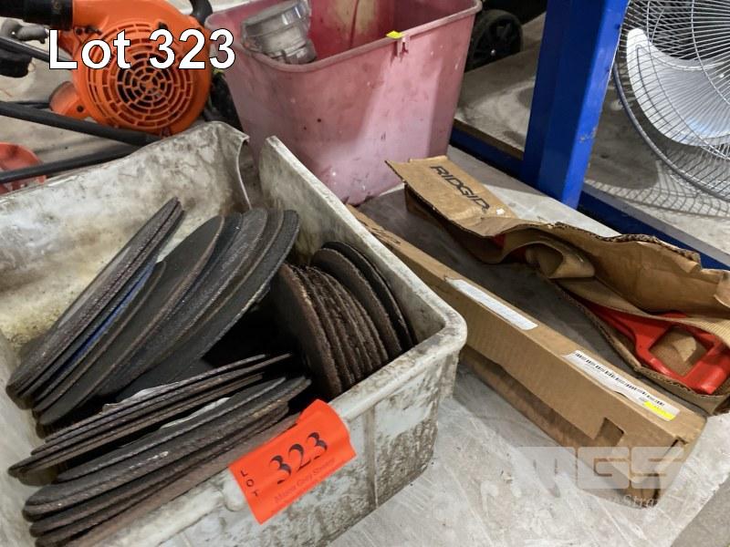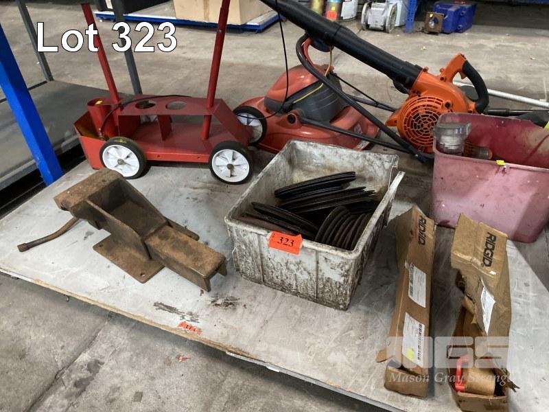 LINE MARKING TROLLEY, WORKSHOP VICE, 60mm, FRICTION CUT OFF DISCS, PLUGS & 2 x RIGID WRENCH STRAPS, 1 x SHELF
