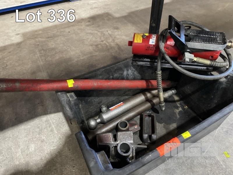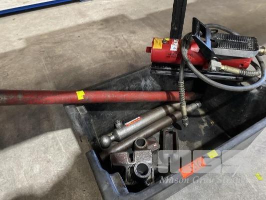 AUTOMOTIVE BODY STRAIGHTENING TOOL SET, AIR/HYDRAULIC POWER PACK WITH HOSE, RAM & ASSORTED DIES & EXTENSIONS, 1 x TUB