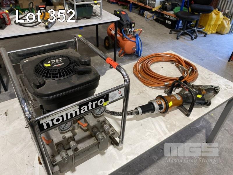HYDRAULIC RESCUE TOOL, JAWS OF LIFE COMBINATION, CUTTER/SPREADER, HOLMATRO MOD: CU3031 WITH HOSES & CONNECTORS, HYDRAULIC POWER PACK, HOLMATRO MOD: DPU40P DOM: 2006 POWERED BY BRIGGS & STRATTON QUANTUM XE50 PETROL ENGINE TWIN OUTLETS