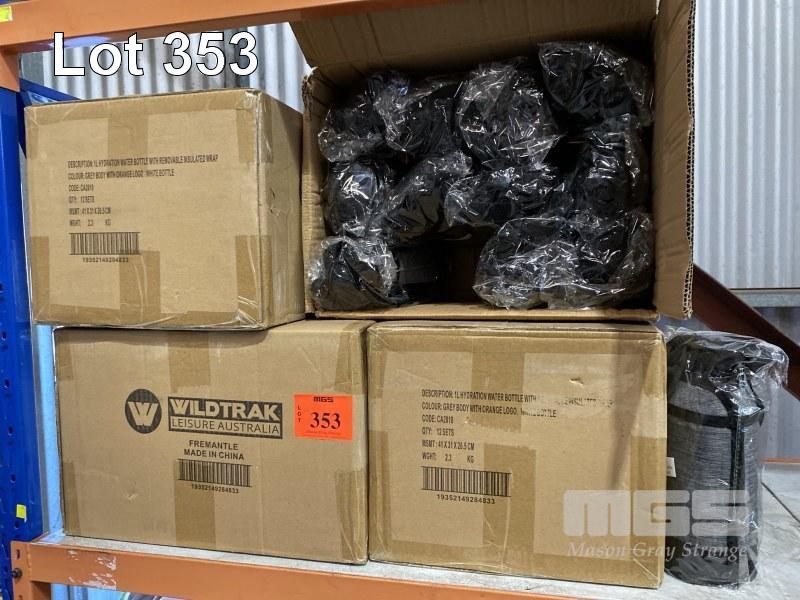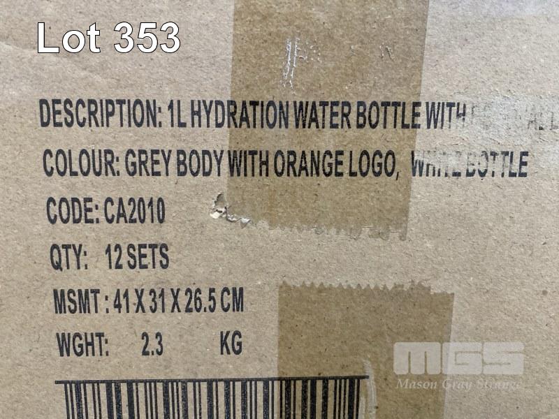 48 x WATER BOTTLES, SILVER PLASTIC WITH BLACK INSULATED CASE, 1 LITRE (4 x BOXES, AS NEW)