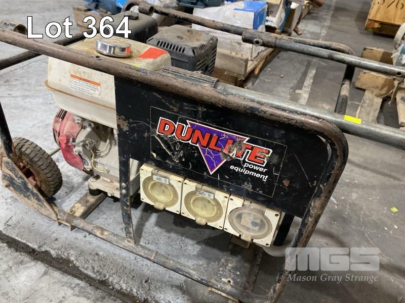 GENERATOR, DUNLITE POWERED BY HONDA, GX390, 13HP PETROL ENGINE, 2 x 240V OUTLETS,MOBILE