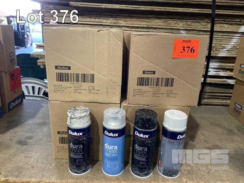 EFFECT SPRAY PAINT, DULUX MARBLE WHITE, 3 x BOXES, MARBLE BLACK, 3 x BOXES, CRACKLE WHITE, 3 x BOXES, GLASS FROSTING, 3 x BOXES, 6 x 300gm CANS/BOX