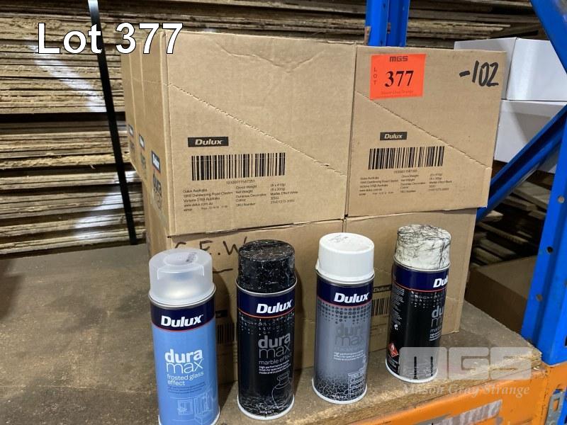 EFFECT SPRAY PAINT, DULUX MARBLE WHITE, 3 x BOXES, MARBLE BLACK, 3 x BOXES, CRACKLE WHITE, 3 x BOXES, GLASS FROSTING, 3 x BOXES, 6 x 300gm CANS/BOX