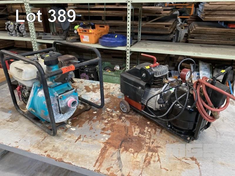 AIR COMPRESSOR, MOBILE, 240V & WATER PUMP, ONGA, HONDA GX160 PETROL ENGINE