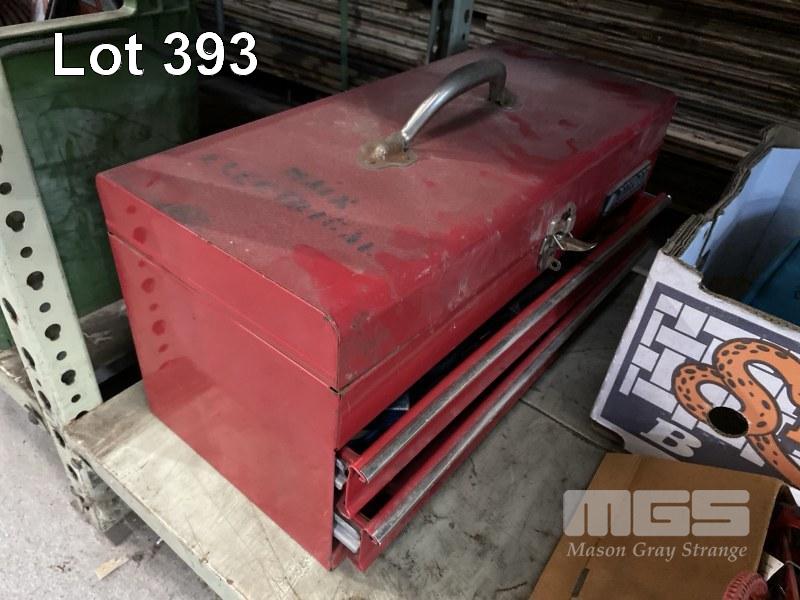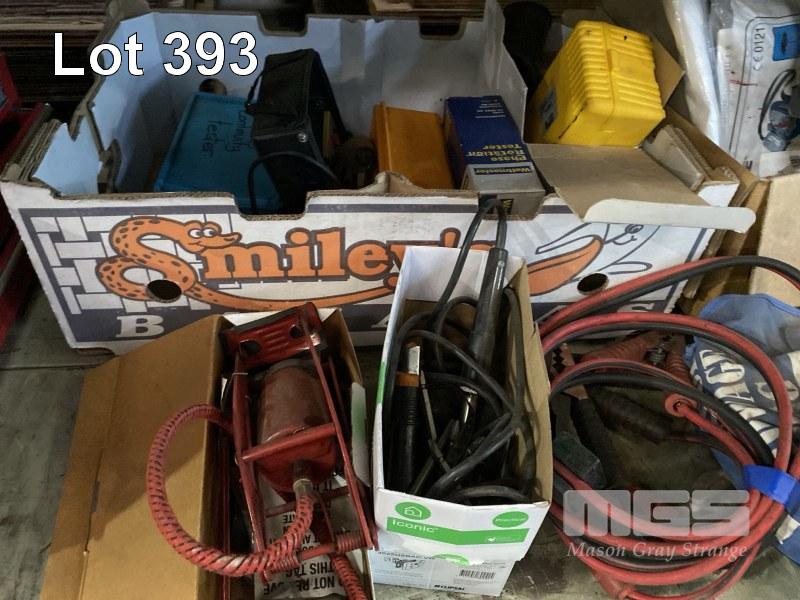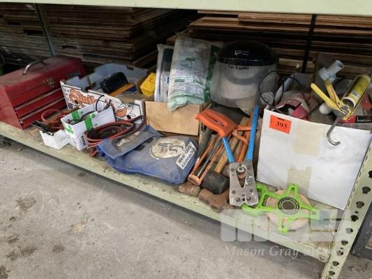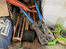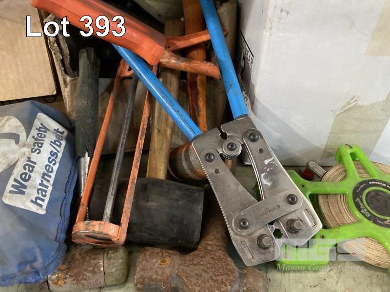 QUANTITY ASSORTED HAND TOOLS, CABLE CRIMPER, CABAC, SAFETY HARNESS, TOOL BOX, MULTI METERS, ETC 1 x SHELF