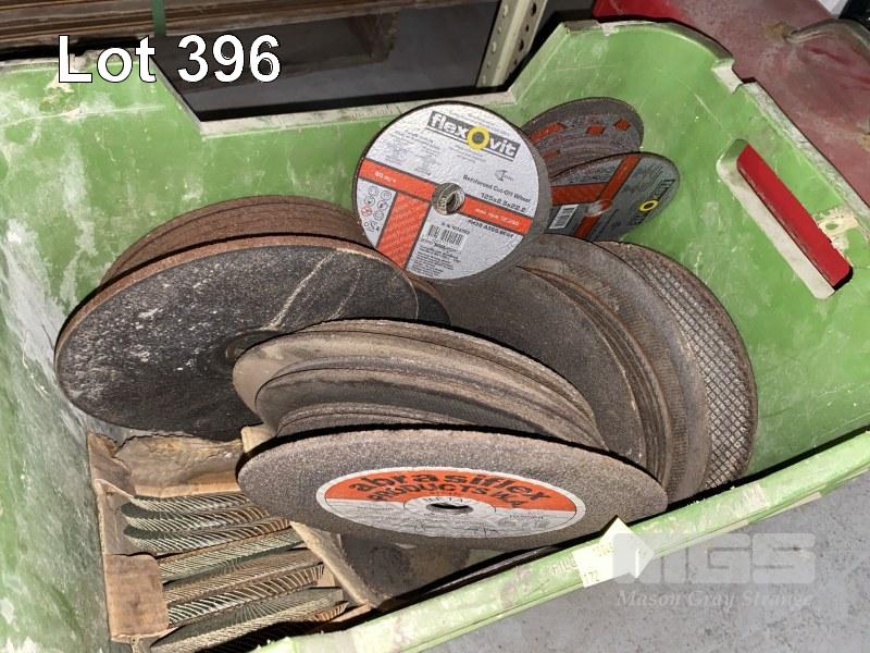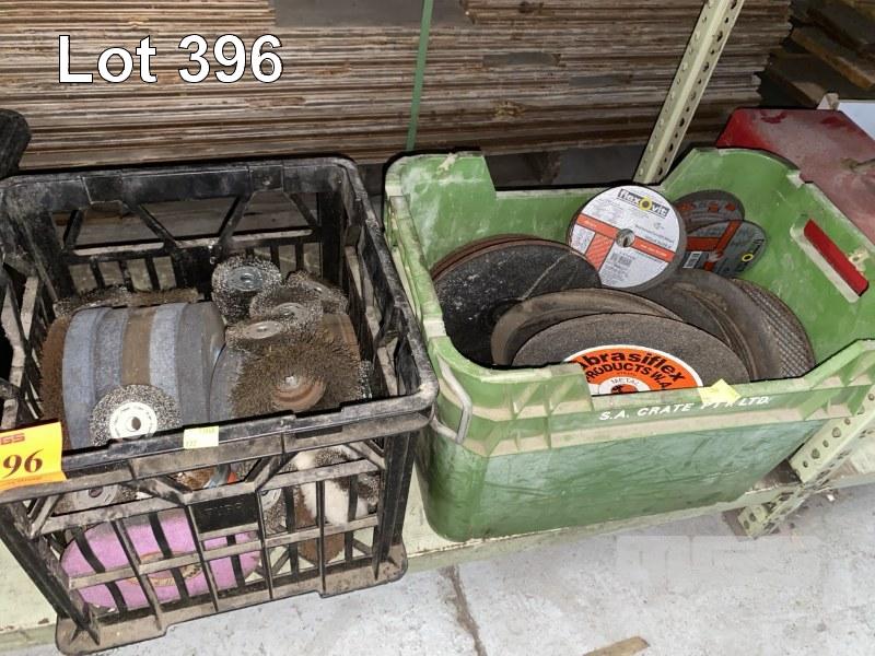 ASSORTED FRICTION CUTTING DISCS, SIZES: 125mm & 400mm INCLUDING GRINDING DISCS & WHEELS, WIRE WHEELS, ETC 2 x TUBS