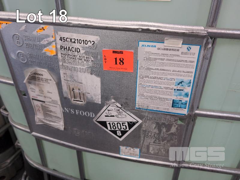1 X 1,000 LITRES FOOD GRADE PHOSPHORIC ACID 85% (1 X IBC)